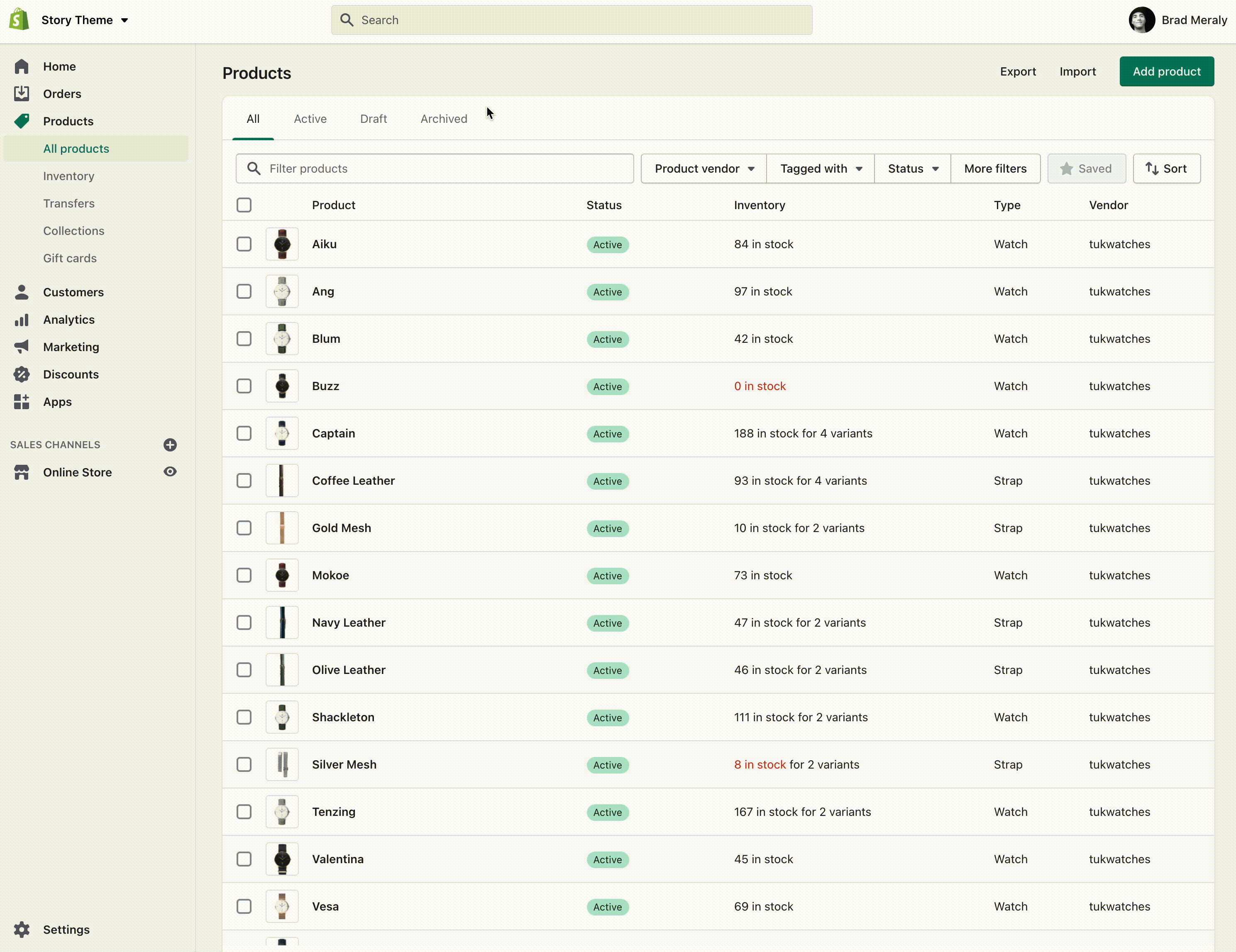 Once a badge metafield is defined (see instructions below), any of your products can display a custom badge. There are no limits to the number of badges you can create and use. All your products will be able to display a custom badge or use the built-in badges for sales and out-of-stock inventory.