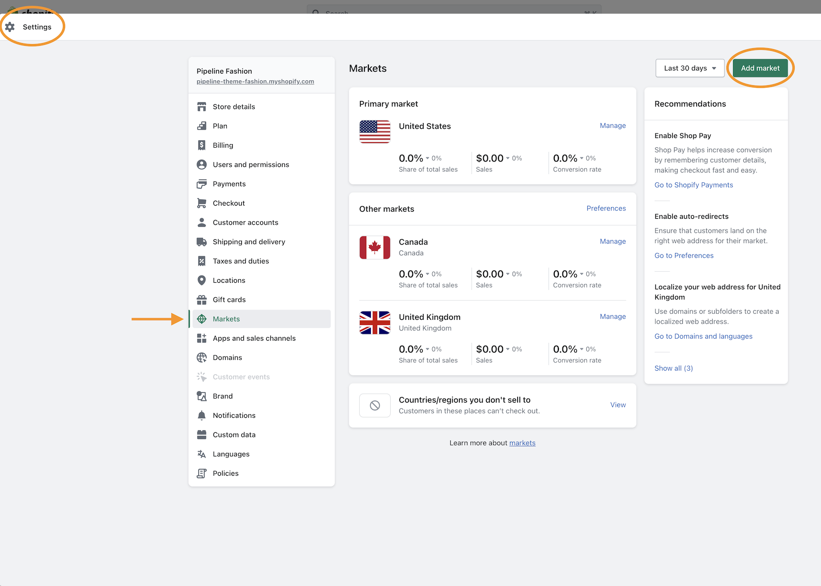 <figure><img src="https://798529998-files.gitbook.io/~/files/v0/b/gitbook-x-prod.appspot.com/o/spaces%2Frse2xho0gVJCQ27Qc08u%2Fuploads%2FWpCtrTXPyY0XywjlccZU%2Fmarkets%20(1).png?alt=media&#x26;token=9c24d085-b0dc-4565-9eee-e5a3571186fd" alt=""><figcaption><p><strong>Shopify Admin -> Settings</strong></p></figcaption></figure>
